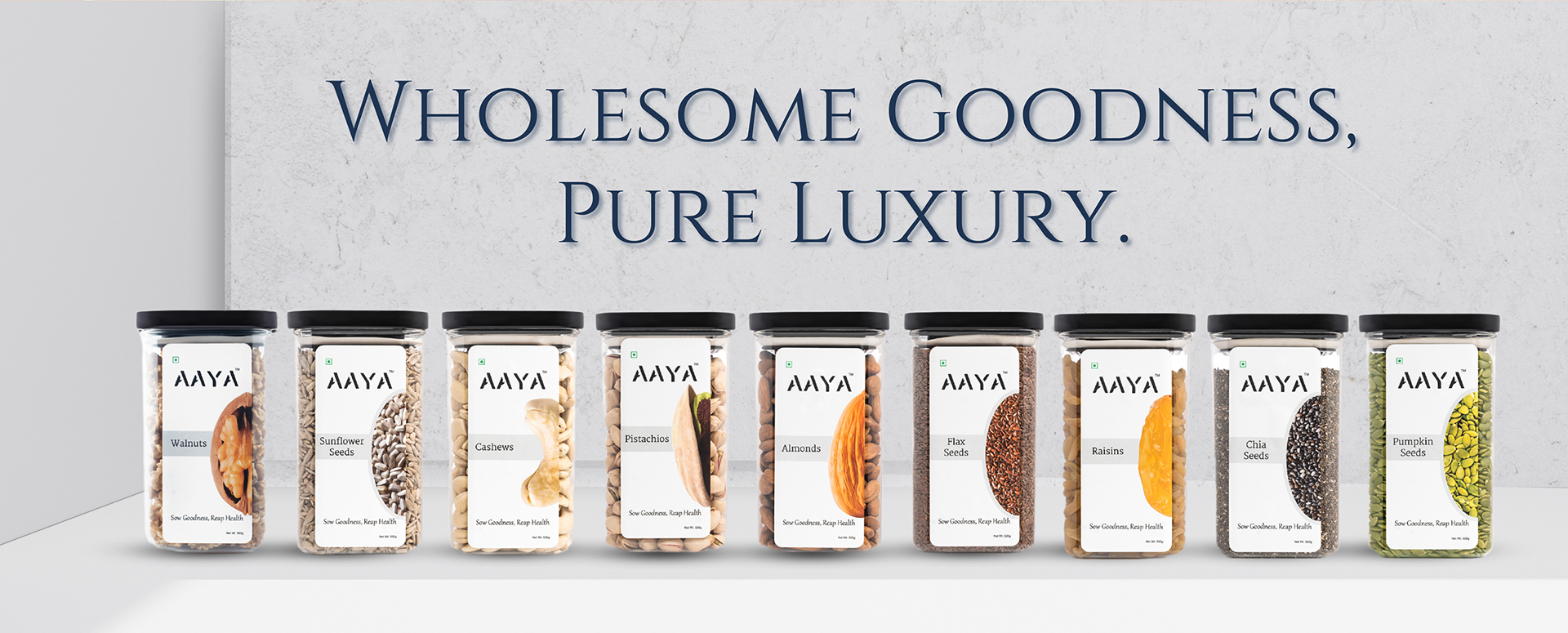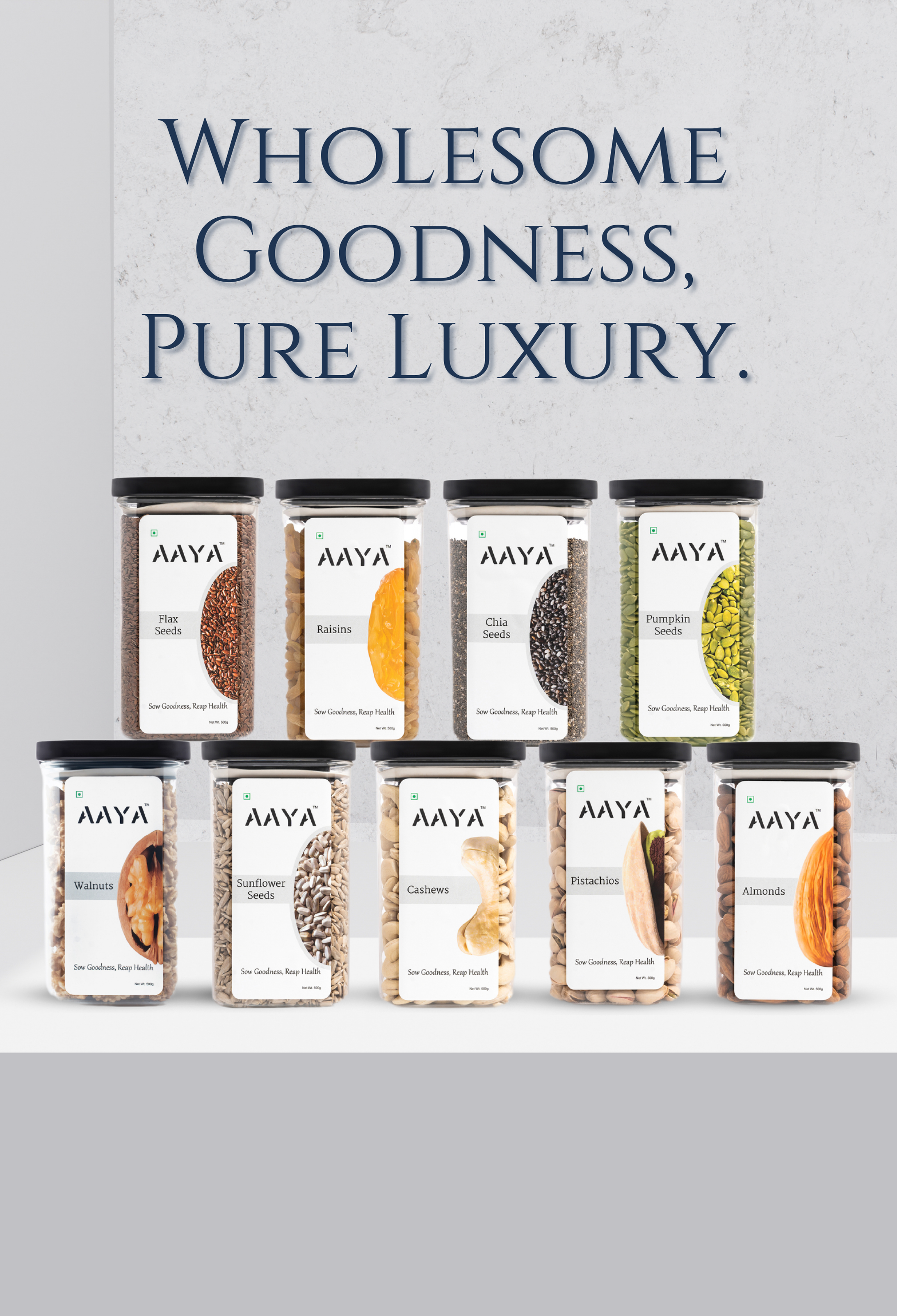 The AAYA Store, an initiative by AAYA ESSENTIALS PRIVATE LIMITED, offers a premium gourmet experience in nuts and seeds, delivering the finest quality dry fruits and seeds right to your doorstep. Our mission is to elevate your snacking habits by offering nutrient-rich options that not only cater to your taste but also promote a healthier lifestyle. At AAYA, we embrace tradition and wellness, recognizing the timeless value of dry fruits in our heritage.