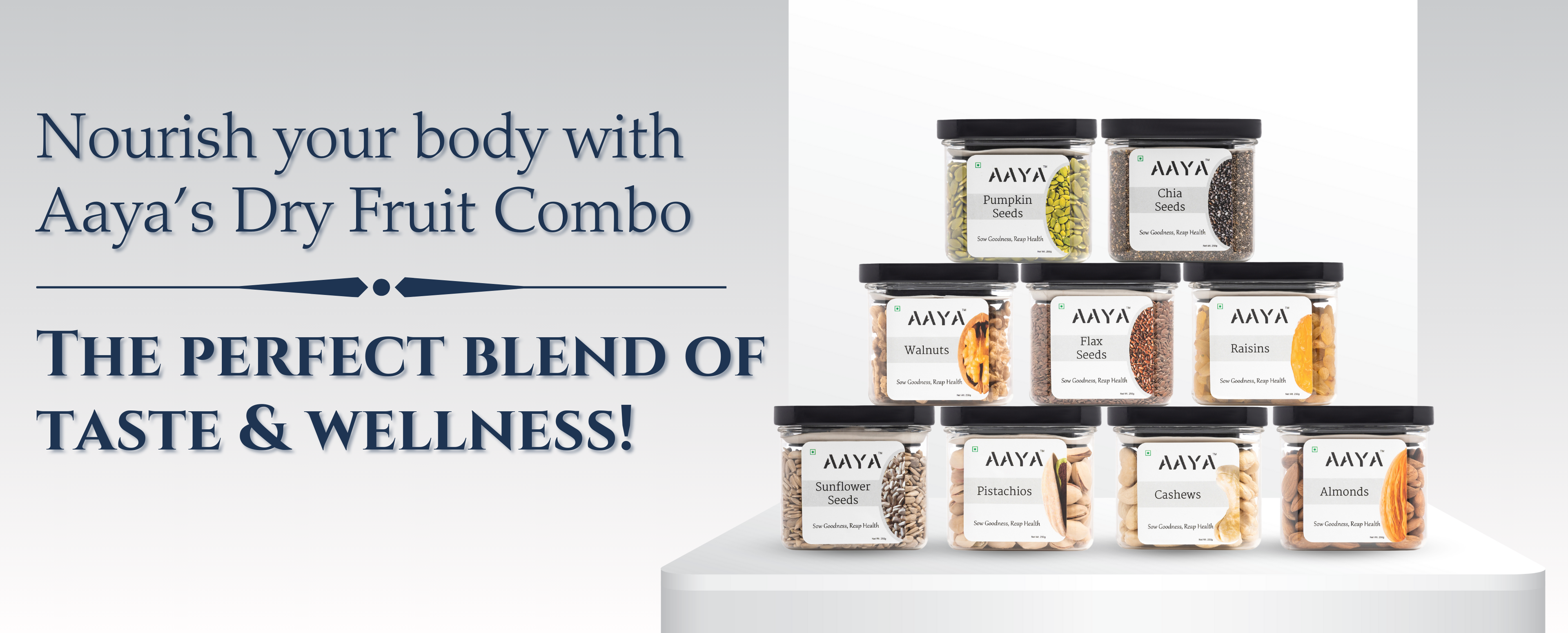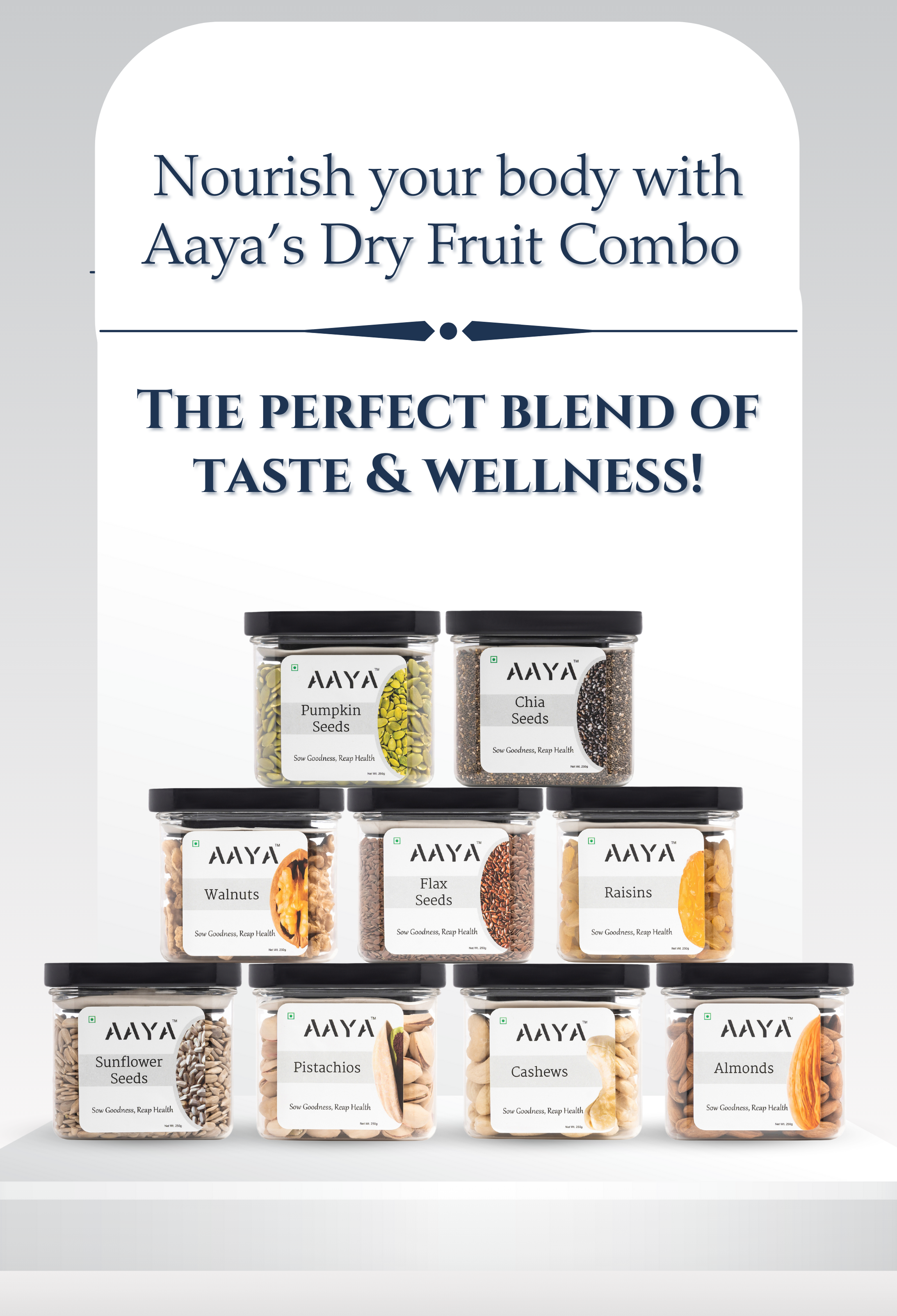 Discover the perfect balance of taste and health with AAYA carefully curated combo packs. Our combos offer a mix of premium nuts, seeds, and dry fruits, designed to cater to your diverse snacking needs. Whether for daily indulgence or special occasions, these nutrient-rich combinations provide a convenient and wholesome way to enjoy nature’s best. Elevate your snacking experience with our thoughtfully paired gourmet combos.