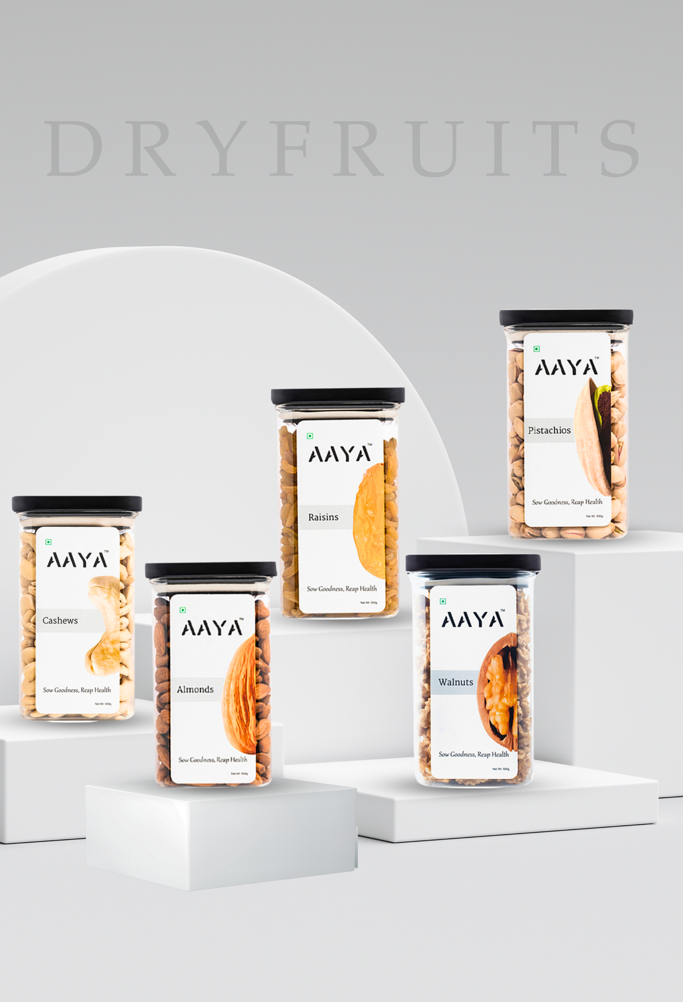 Discover AAYA selection of premium dry fruits, sourced from the finest farms to deliver superior taste and nutrition. Rich in vitamins, minerals, and antioxidants, our dry fruits are the perfect healthy snack or addition to your meals. Naturally delicious and free from preservatives, they offer a wholesome boost to your everyday diet. Enjoy nature’s finest with our handpicked range of almonds, cashews, pistachios, and more.