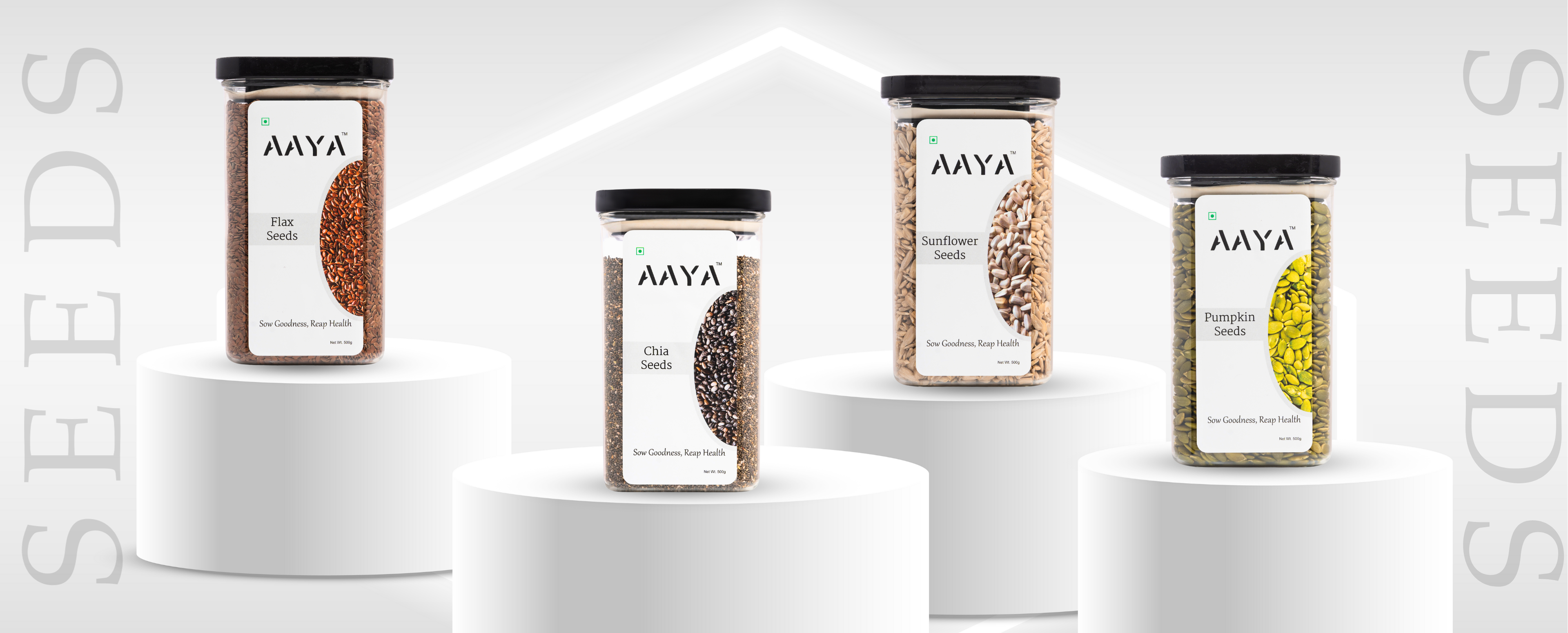Explore AAYA range of nutrient-packed seeds, perfect for a healthy lifestyle. Our seeds, including chia, flax, and pumpkin, are carefully selected for their freshness and high nutritional value. Rich in fiber, protein, and essential fatty acids, they make an excellent addition to smoothies, salads, or snacks. Enjoy the natural goodness of our premium seeds to boost your wellness and energy every day.