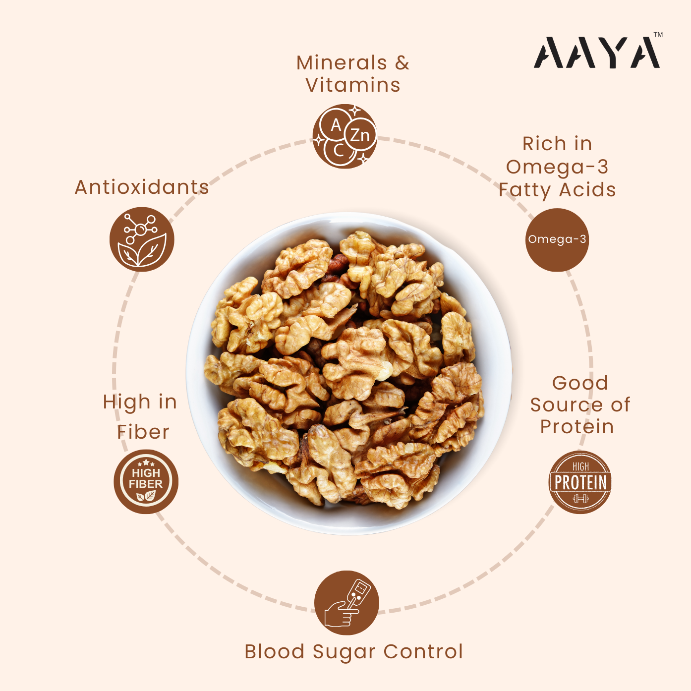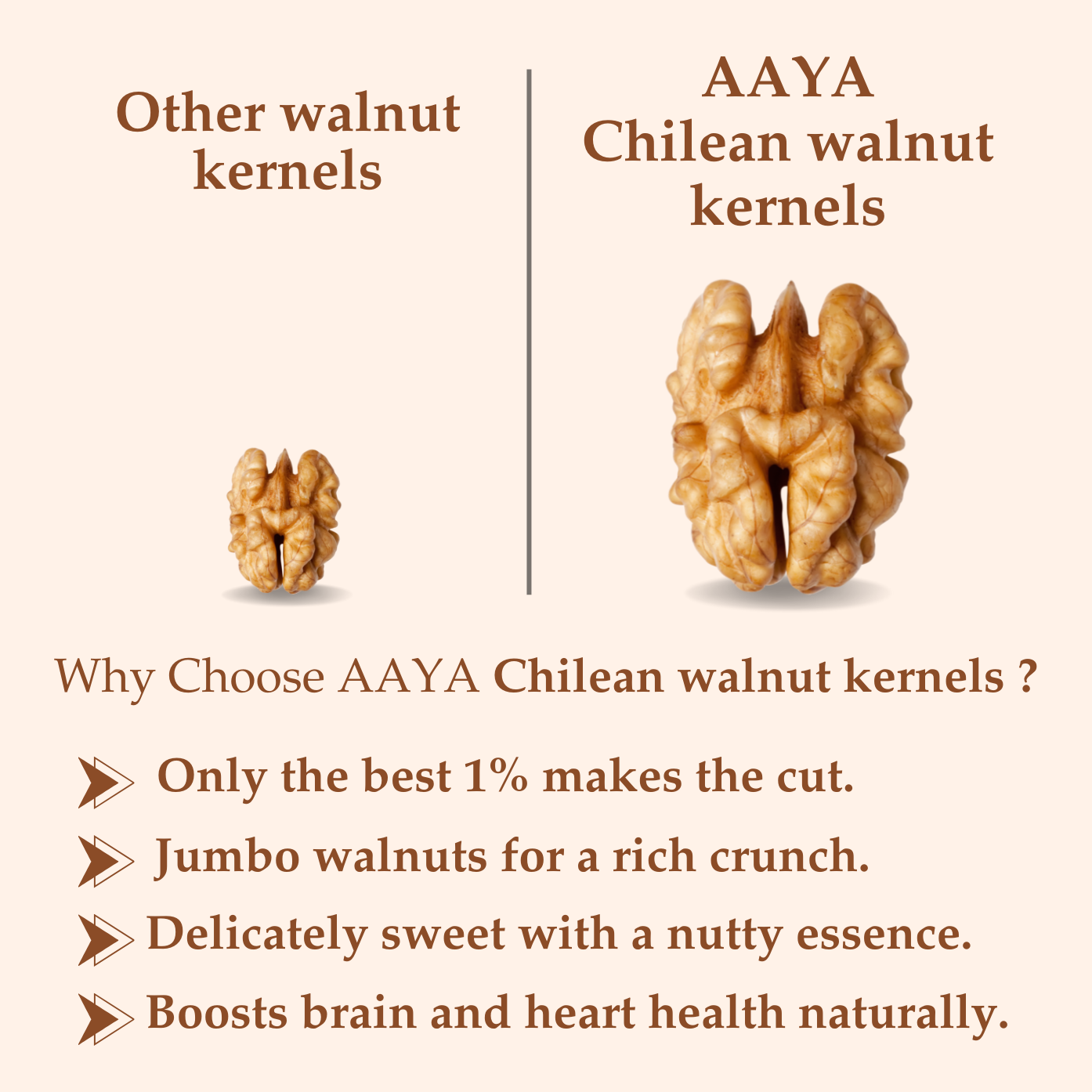 Heart Health: Rich in omega-3 fatty acids, these walnuts support cardiovascular health by reducing inflammation and lowering bad cholesterol levels.