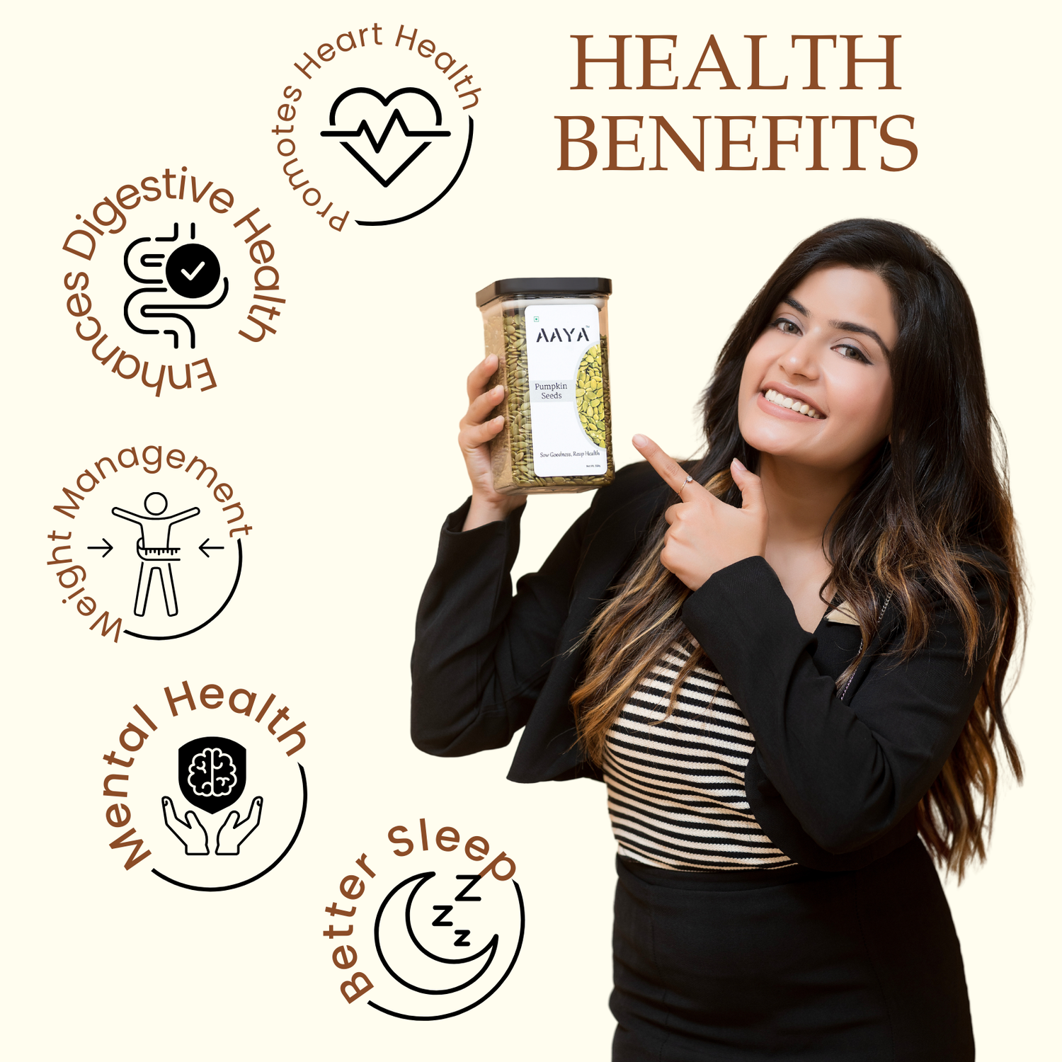 Supports Mental Health: Rich in magnesium and tryptophan, pumpkin seeds may help improve mood and cognitive function, reducing anxiety and promoting relaxation.