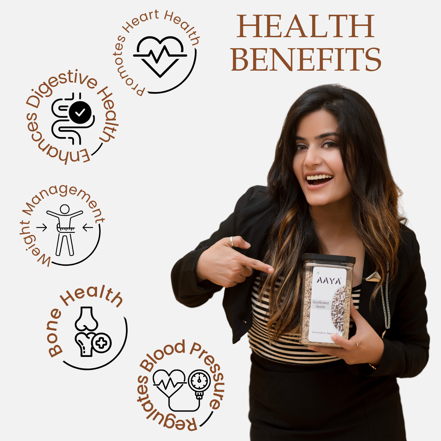 Aids Weight Management: Packed with protein and healthy fats, sunflower seeds promote satiety, helping control appetite and support healthy weight loss.